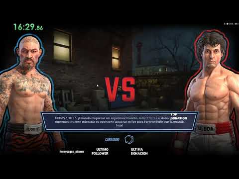• Minuto 17:22 (vs. Rocky Balboa): El inicio del combate se centra casi exclusivamente en golpes al cuerpo. Fíjate cómo la barra de estamina de Rocky parpadea en amarillo. Esa es la señal para cambiar a los golpes a la cabeza y buscar el K.O.